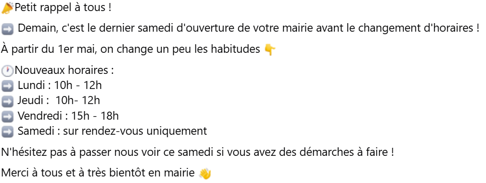 De l’état civil, en passant par la location de la salle des fêtes , cimetière et bien d’autres encore…